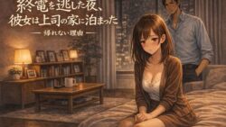 OL 終電を逃した夜、彼女は上司の家に泊まった ―帰れない理由―【d_748418】 OLオフィス・職場上司夜の灯る部屋寝取られ・NTR寝取り・寝取られ・NTR巨乳成人向け浮気男性向け脚萌え退廃・背徳・インモラル