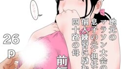 おっぱい 地元のマラソン大会の為息子の元・担任と個人練習に励む四十路の母 前編【RJ01592722】