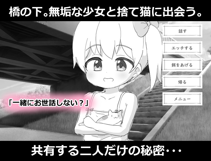 ![少女と猫と橋の下~いたずらシミュレーション~ [にちゃにちゃソフト] 少女と猫と橋の下~いたずらシミュレーション~ [にちゃにちゃソフト]](http://img.dlsite.jp/modpub/images2/parts/RJ01580000/RJ01579958/73e0c1fa38b2516c66282b101e1c19f6.jpg)