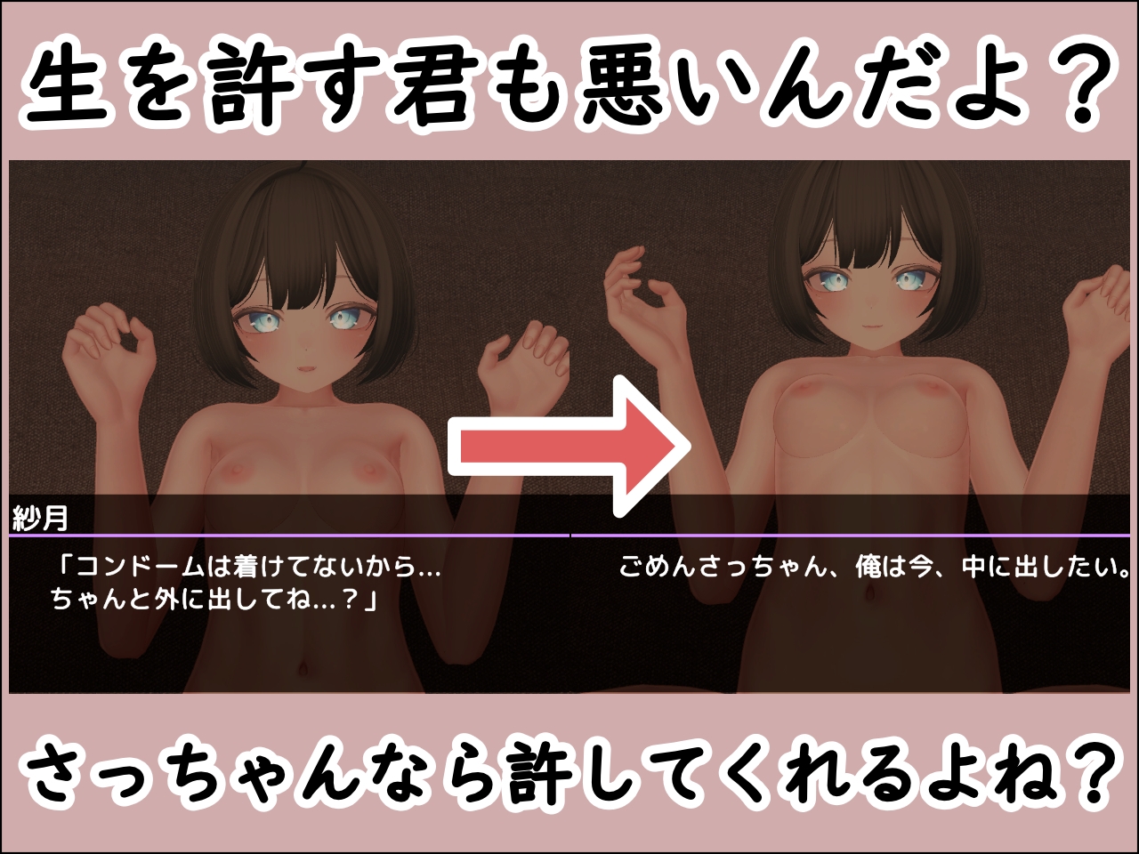 無許可中出し小編ノベル + 一人称視点 3Dえっちゲームです。